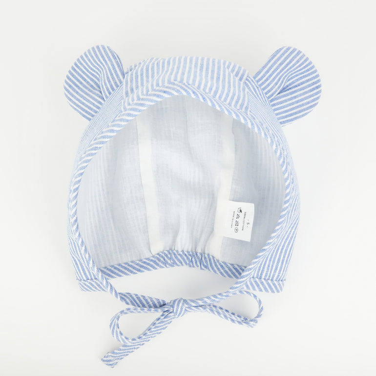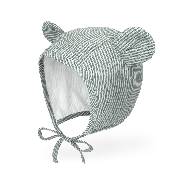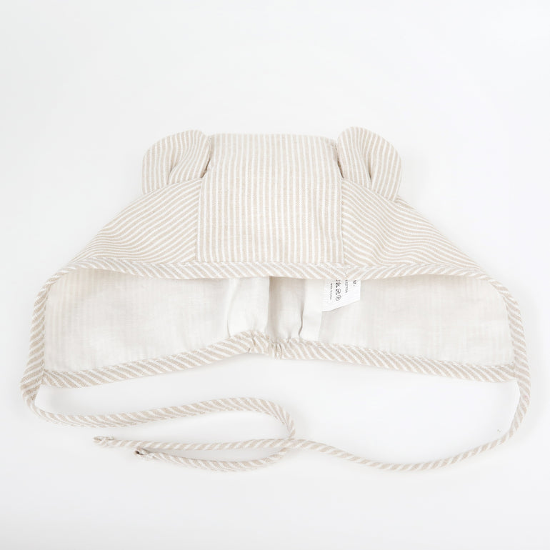 Baby Muslin Lined Stripe Bear Bonnet Hat | Beige