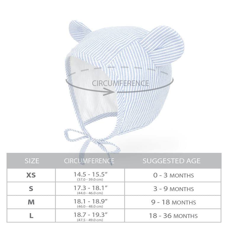 [ MATERIAL & SIZE ] : Breathable 100% cotton, fully muslin lined double layer bonnet. Fit ranges from 3 - 24 months (S, M, L). Please check detailed measurements before placing your order. Please keep in mind the color of screen & photos under different lighting may differ slightly from the product you will get at home.