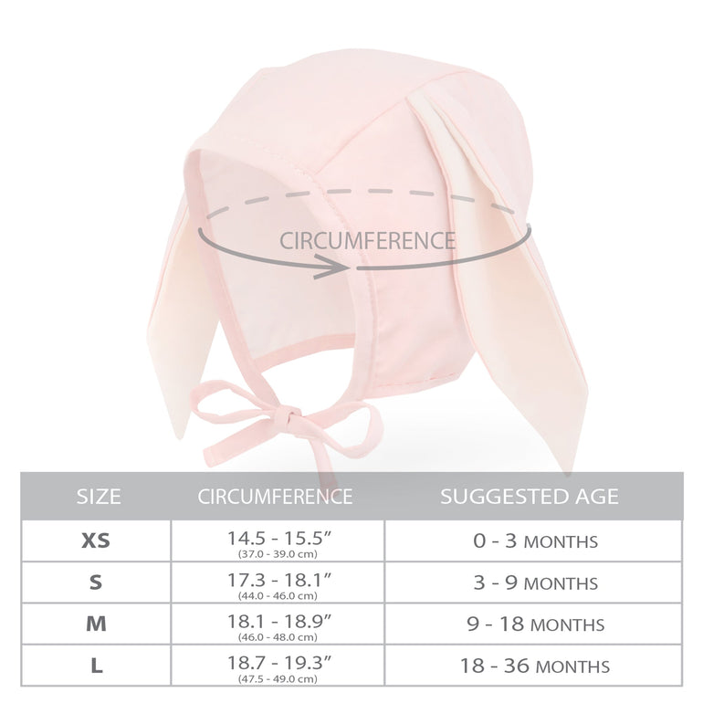 [ MATERIAL & SIZE ] : Breathable 100% cotton, fully muslin lined double layer bonnet. Fit ranges from 0 - 36 months (XS, S, M, L). Please check detailed measurements before placing your order. Please keep in mind the color of screen & photos under different lighting may differ slightly from the product you will get at home.