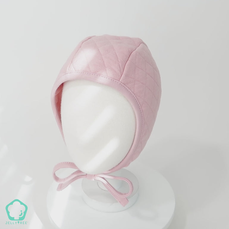 [ MATERIAL & SIZE ] : Warm padded/quilt 100% cotton, fully muslin lined double layer bonnet. Fit ranges from 3 - 18 months (M, L, XL). Please check detailed measurements before placing your order. Please keep in mind the color of screen & photos under different lighting may differ slightly from the product you will get at home.
