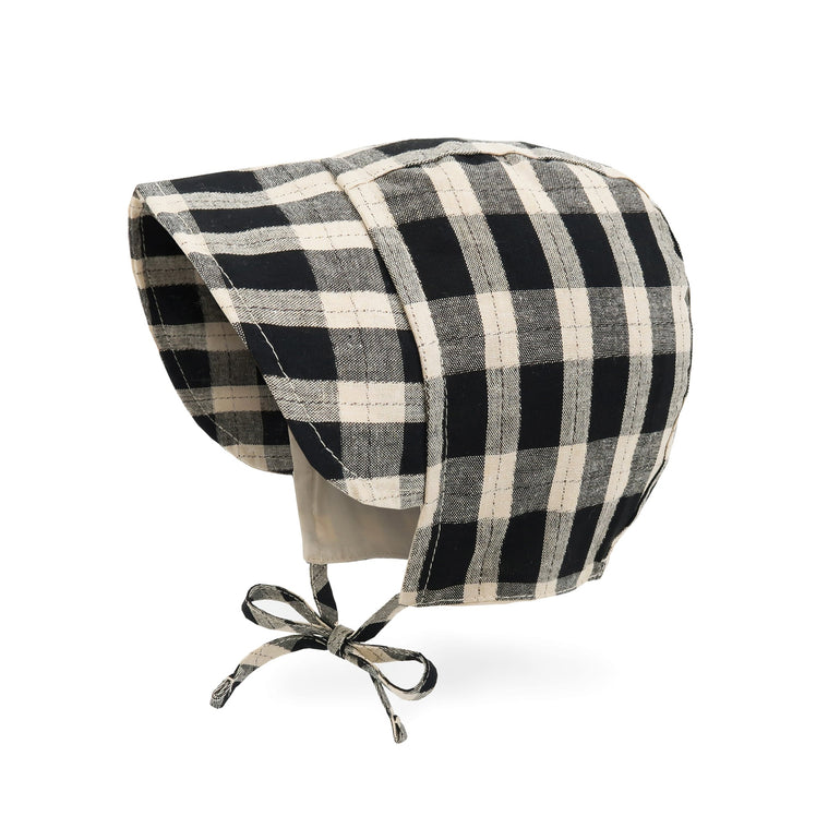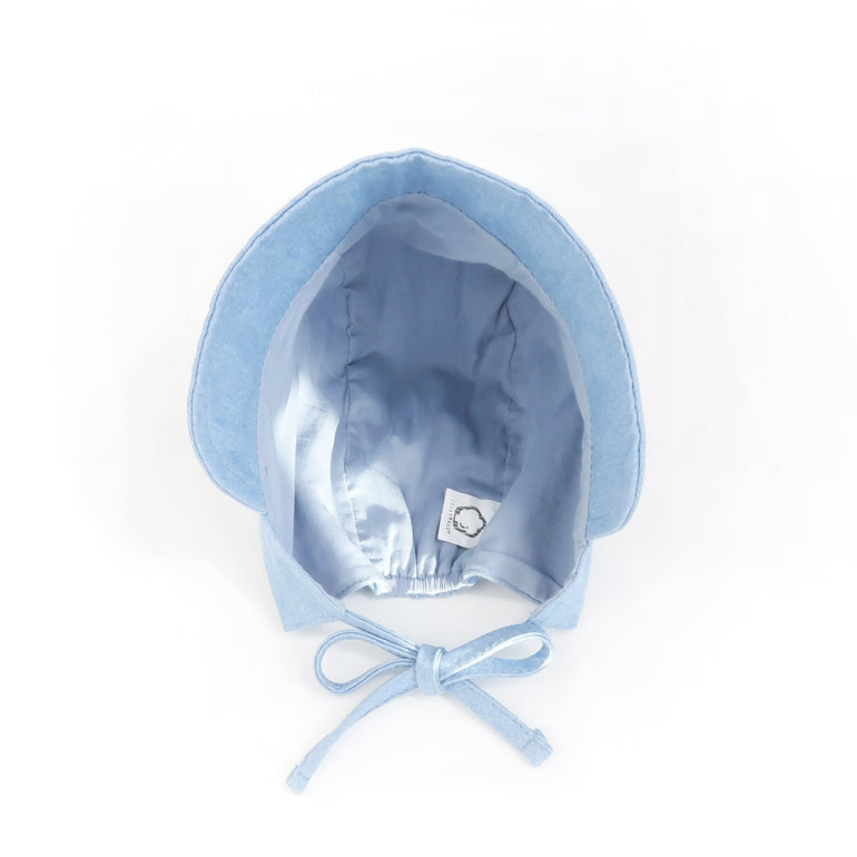 Baby Denim Plaid Brimmed Bonnet Hat | Light Denim