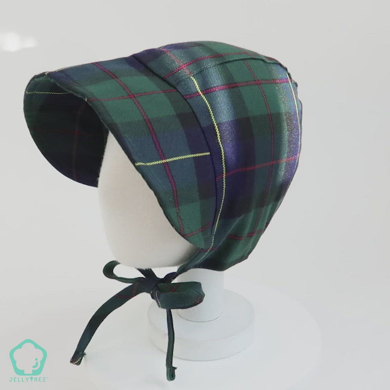 Baby Denim Plaid Brimmed Bonnet Hat | Navy Plaid