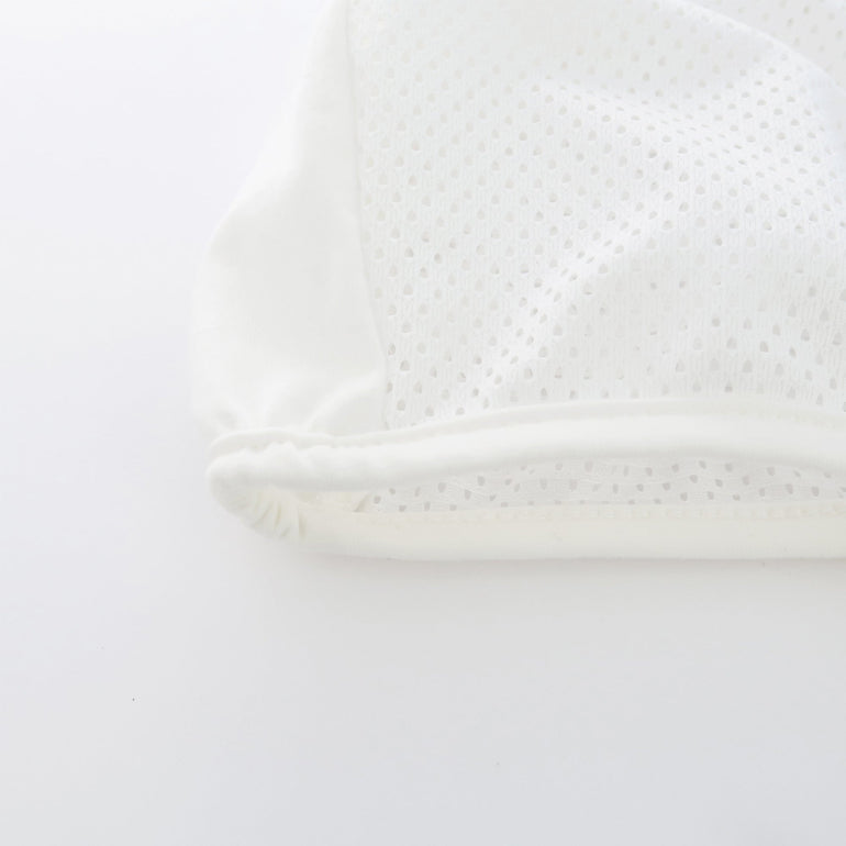 [ MATERIAL & SIZE ] : Super stretchy cotton with mesh fabric. Soft cotton chin ties keep the hat on your baby’s head. Fit ranges from 0 - 18 months (S, M, L). Please check detailed measurements before placing your order. Please keep in mind the color of screen & photos under different lighting may differ slightly from the product you will get at home.