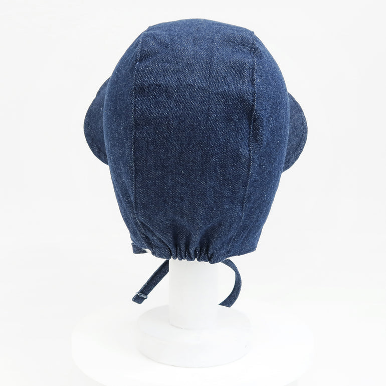 Baby Denim Plaid Brimmed Bonnet Hat | Dark Denim