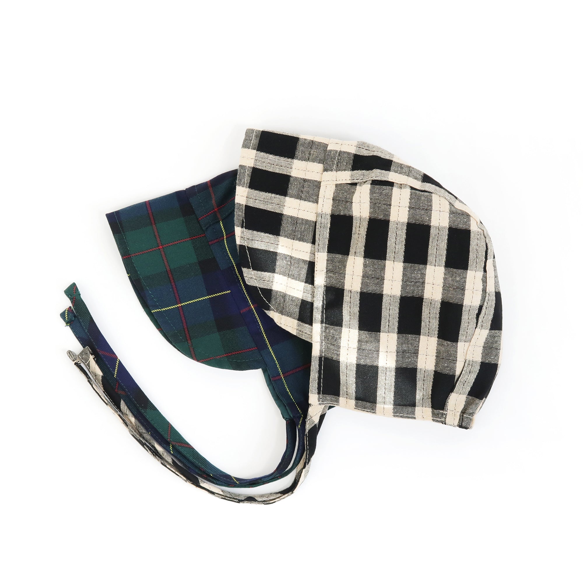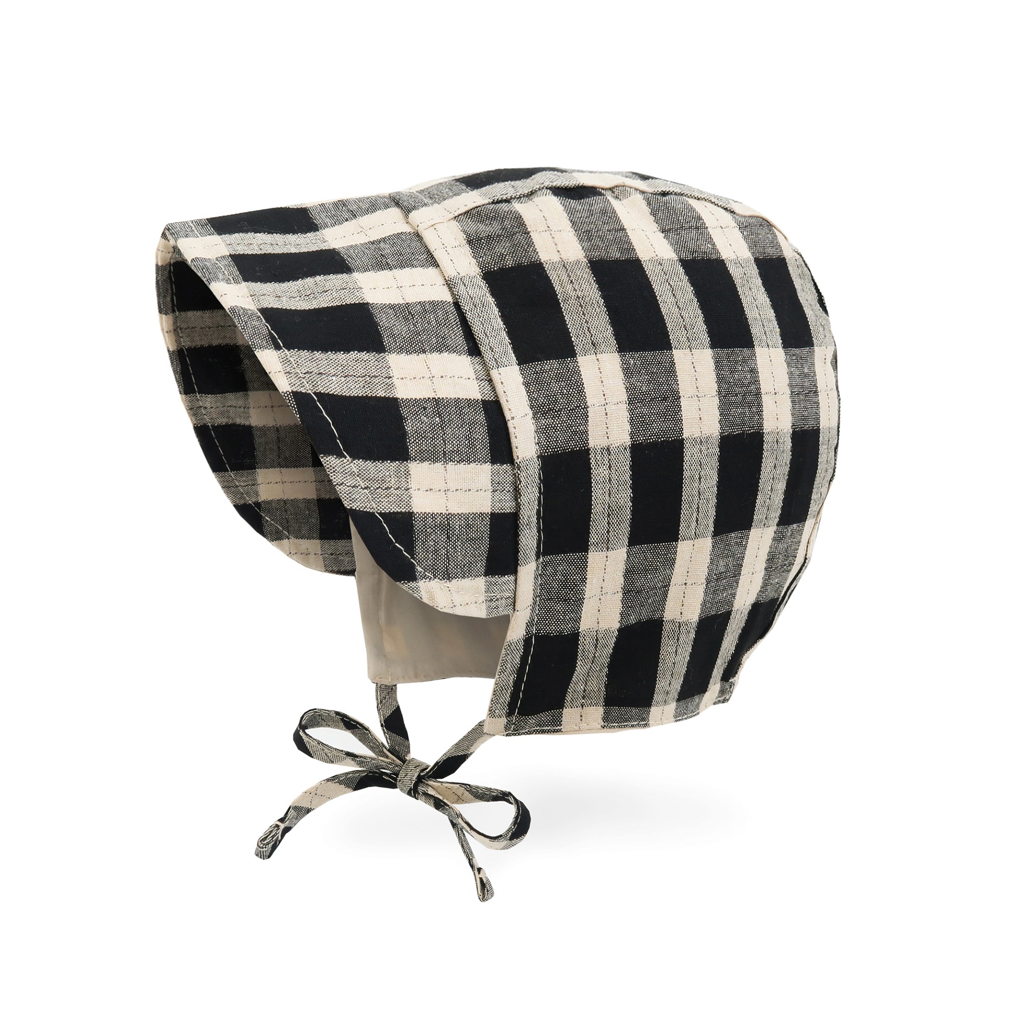 Baby Denim Plaid Brimmed Bonnet Hat | Black Plaid
