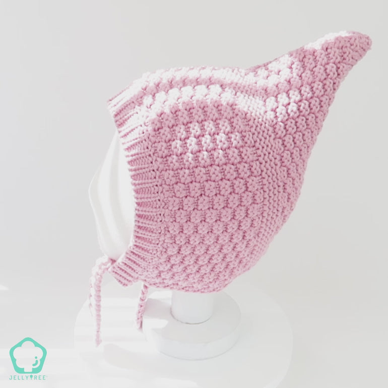 Baby Knit Bonnet Warm Cotton Lined Pixie Hat | Pink