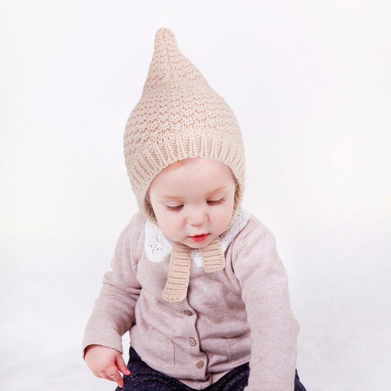 Baby Knit Bonnet Warm Cotton Lined Pixie Hat | Sage Green