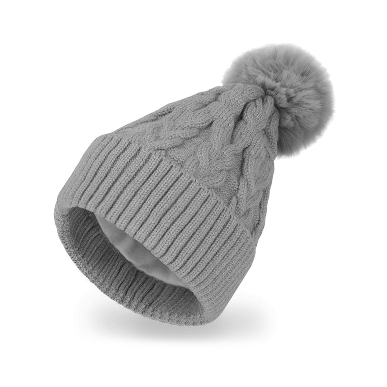 Baby Winter Knit Cotton Lined Pompom Hat | Gray