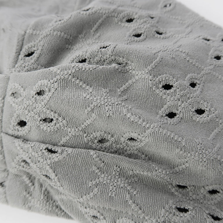 [ MATERIAL & SIZE ] : Super stretchy & soft blended fabric (95%polyester, 5%spandex) with embroidered eyelet detail. Fit ranges from 3 - 12 months (S, M). Please check detailed measurements before placing your order. Eyelet fabrics are delicate and malleable, hand-wash with cold water and lay flat to dry recommended.