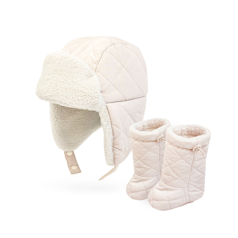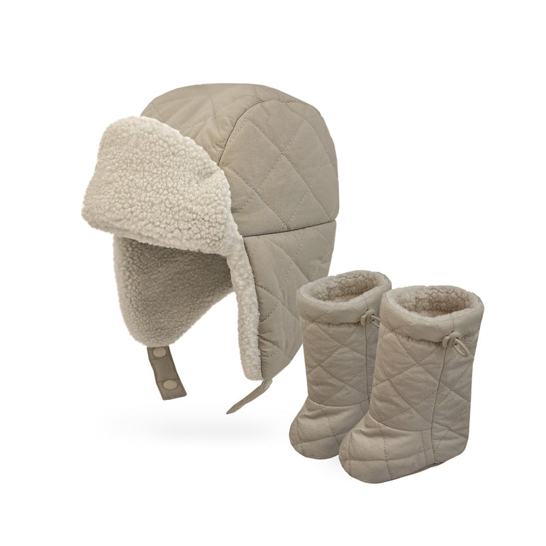 [ DESIGN ]: Our snow water resistant & lightweight baby trapper hat not only provides complete coverage with soft sherpa lining but is also, easy to put on and take off for your baby. Perfect for winter holiday gift that keeps your little one warm and cuddly. Complete your baby's adorable fashion with our winter earflap hat & booties which are easy to match with everyday outfits.